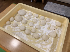 子どもたちは力いっぱい「ぺったんぺったん」の掛け声に合わせてお餅をつきました。出来上がったお餅を綺麗に丸めてお正月用のお飾りが出来ました♬