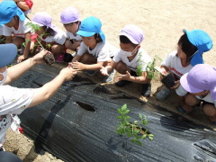 例年通り、今年も畑でお芋を作ります!子どもたちが一つ一つ丁寧に植えてくれました。今年もたくさんのお芋ができるかな♬