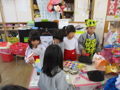 サンタさんには申し訳ないけど、各クラスに回ってもらいました。