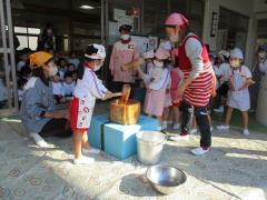 小さいクラスの子どもたちも応援してくれて園内に“ぺったんこ~ぺったんこ~”と元気のいい掛け声が響いていました。